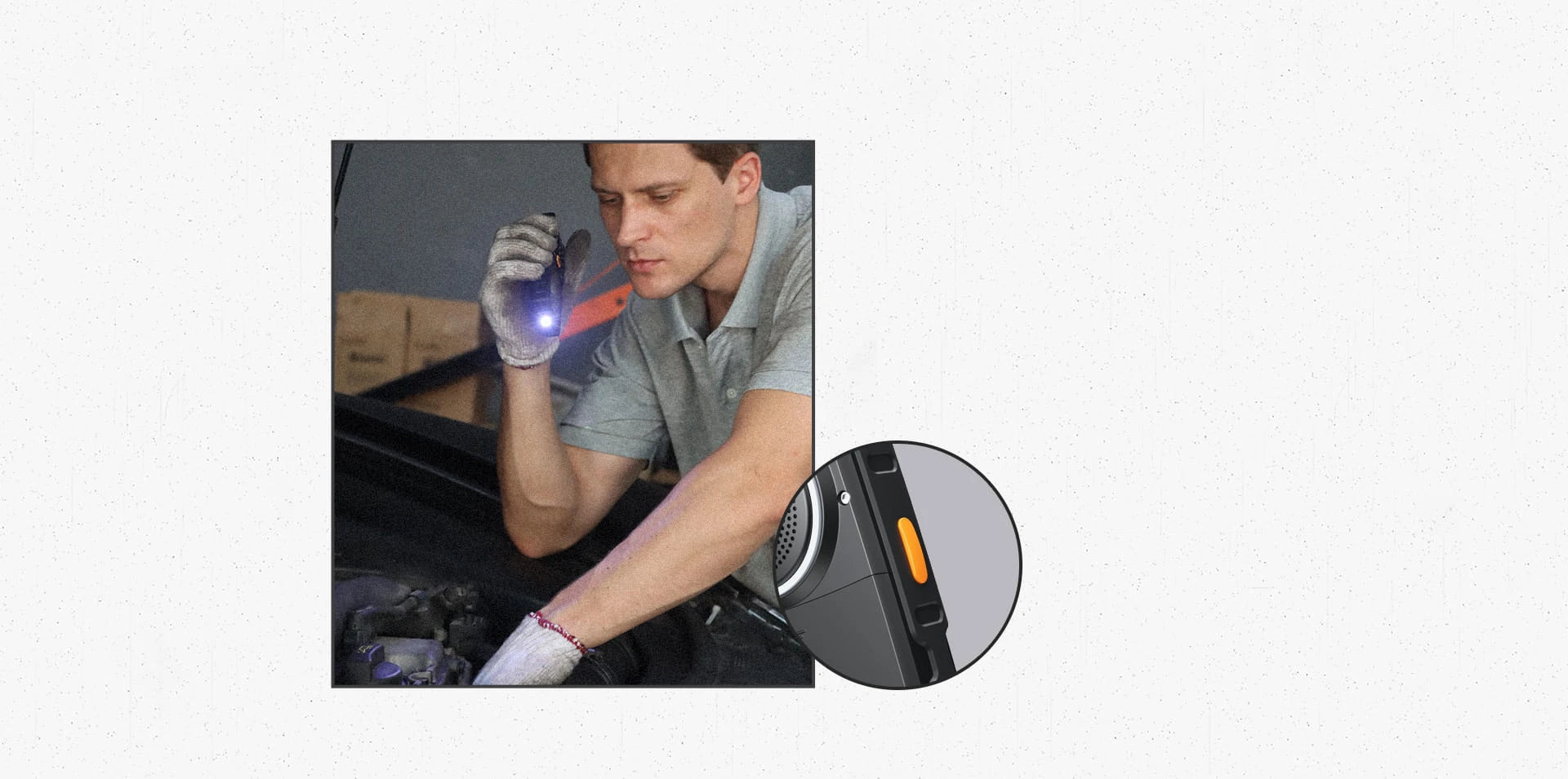 Press the orange side-key,instantly turn on the torch